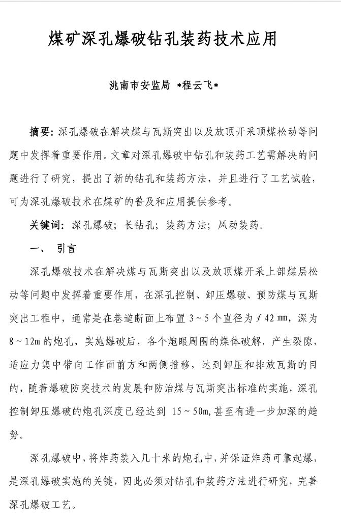 煤礦深孔爆破鉆孔裝藥技術應用--BQFM煤礦系列