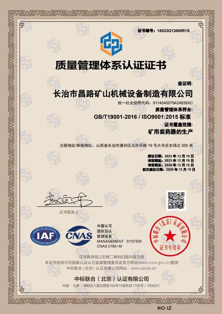 榮獲質量管理體系認證證書