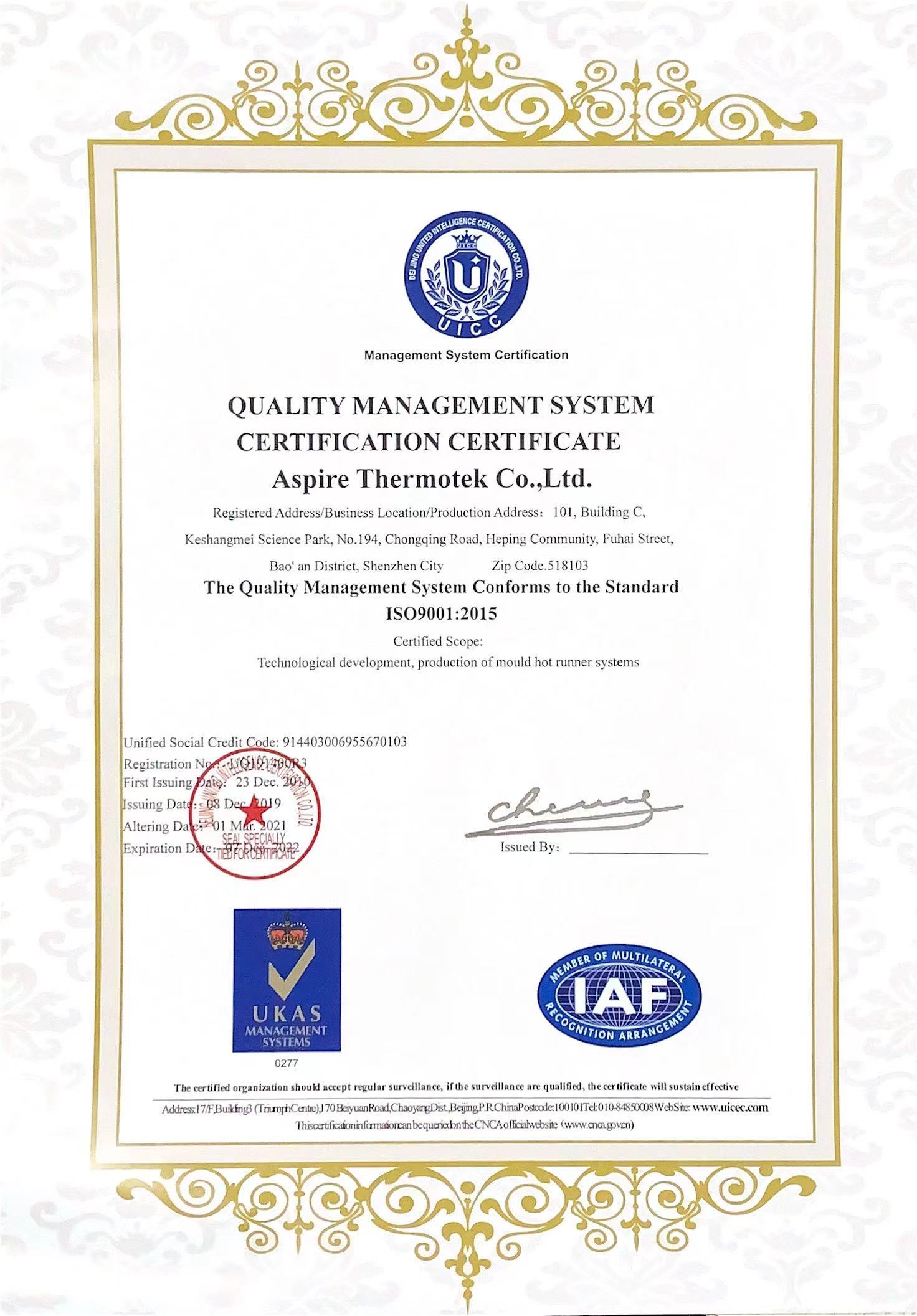 管理體系認證證書
